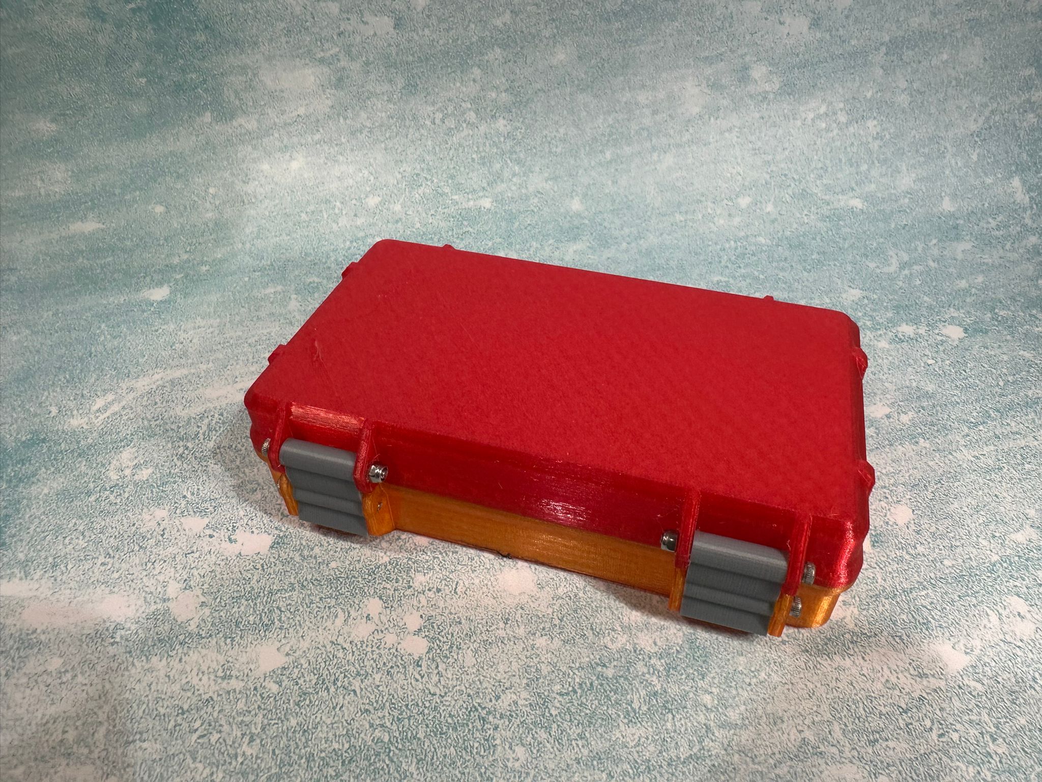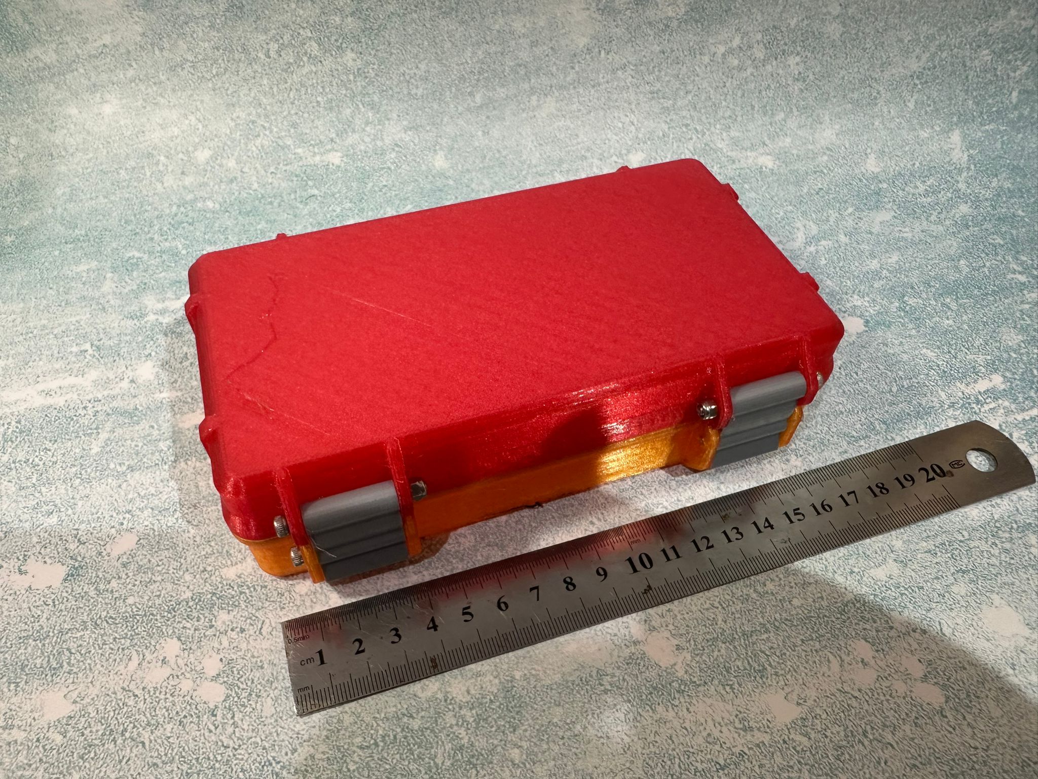 Scatola piatta stampata in 3D, progettata per offrire protezione da polvere, pioggia e schizzi.
