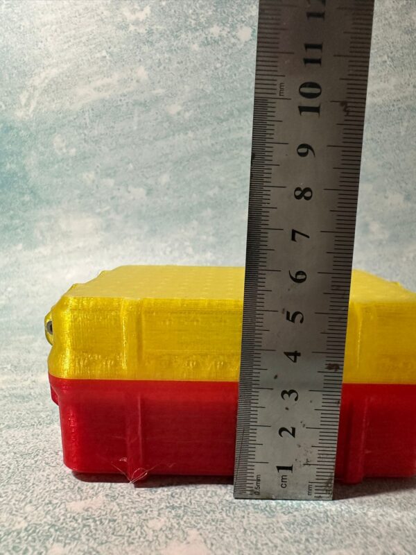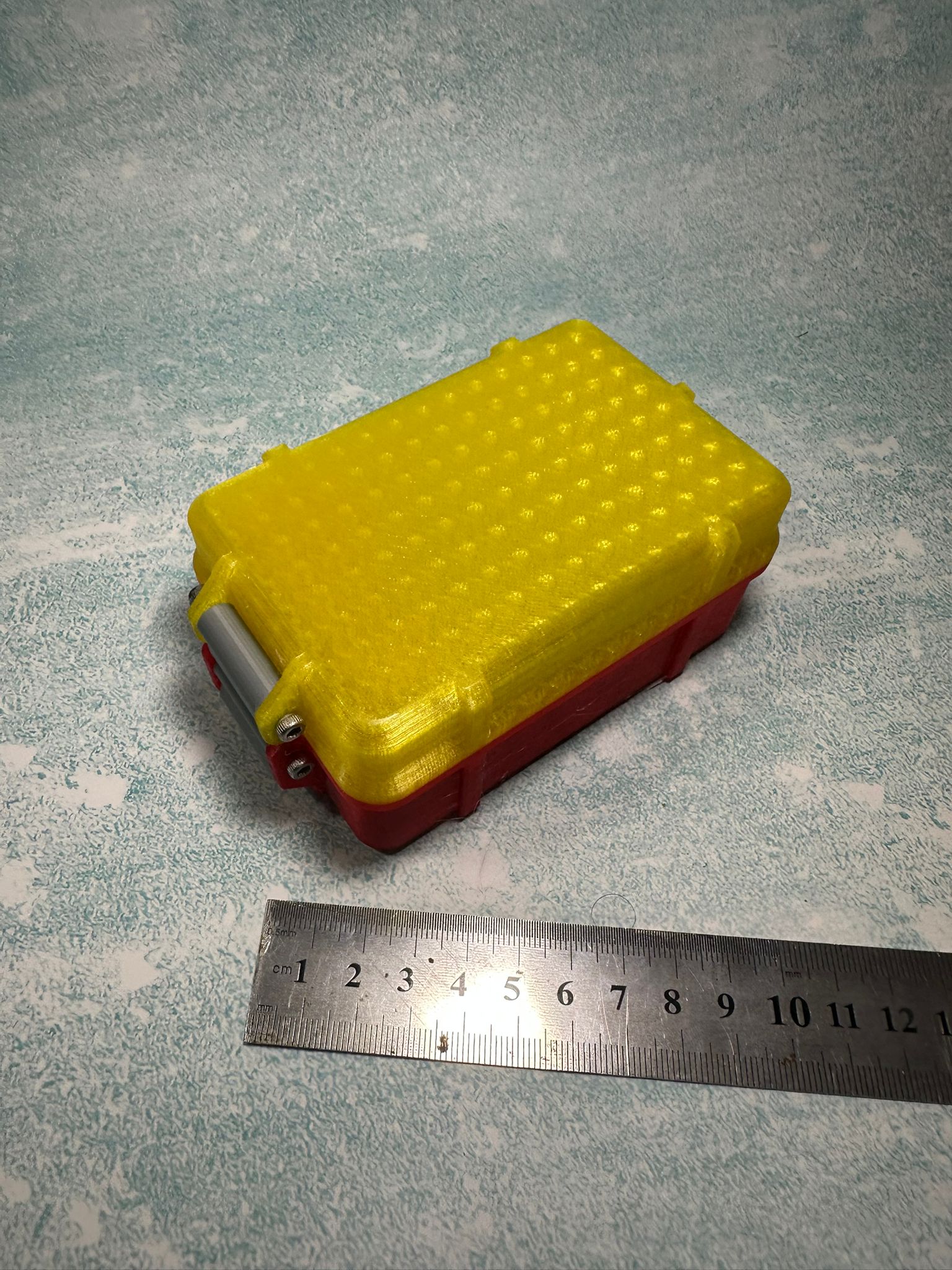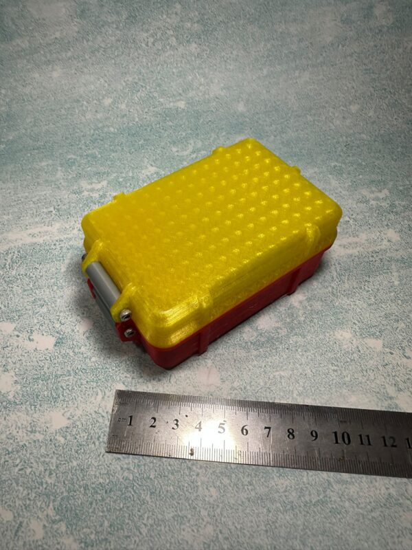 Scatola compatta stampata in 3D, progettata per custodire piccoli oggetti con la massima sicurezza.